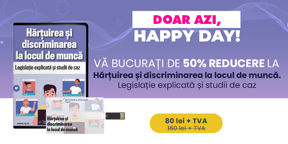 Lucrarea “Hartuirea si discriminarea la locul de munca. Legislatie explicata si studii de caz” va arata exact ce obligatii aveti si cum sa evitati sanctiunile. E o lectura obligatorie pentru orice angajator!